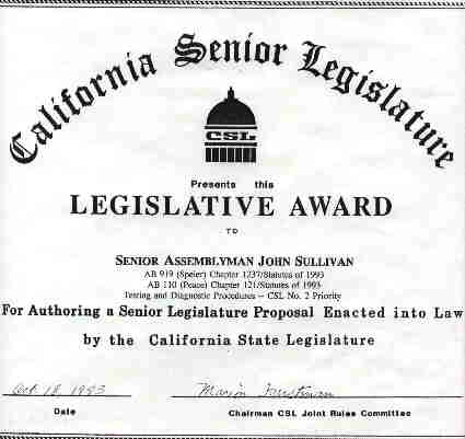 received an award from the California Senate Rules Committee for his legislation.