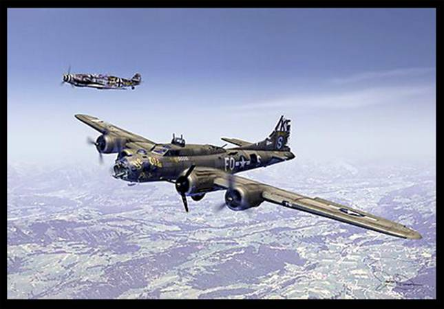 Despite having ammunition, Franz flew to the side of the B-17 and