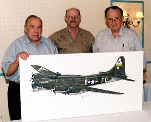 (L-R) German Ace Franz Stigler, artist Ernie Boyett, and B-17 pilot